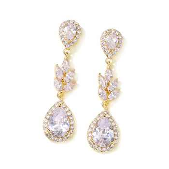 RAKOLEP5009高級リーフ型キュービックジルコニアロングドロップイヤリングウェディングロングイヤリングジュエリー