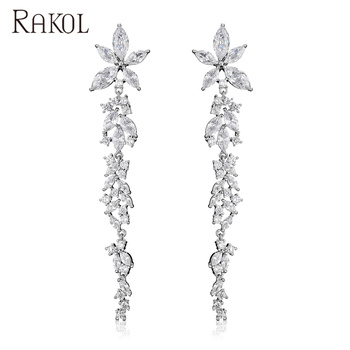 RAKOL EP5066キュービックジルコニアブライダルジュエリーロングティアドロップダングルイヤリング女性CZウェディングブラスイヤリング